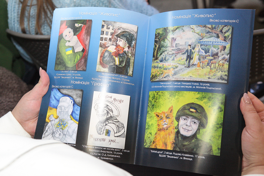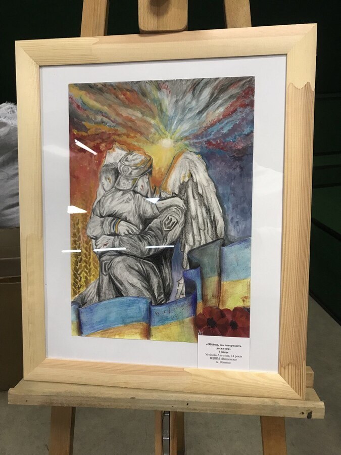 Одне з перших місць конкурсу здобула учениця Вінницької дитячої школи мистецтв «Вишенька» Ангеліна Устінова. Її робота «Обійми, що повертають до життя» розповідає про любов і зв’язок між військовим батьком і сином, де тато постає не лише героєм, а й ангелом-охоронцем.