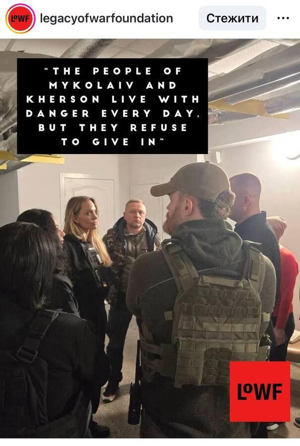 Голлівудська акторка та посол доброї волі ООН Анджеліна Джолі побувала на півдні України — у Миколаєві та Херсоні. Візит відбувся разом із міжнародною благодійною організацією Legacy Of War Foundation. Про це повідомляє My Vin, посилаючись на РБК-Україна.