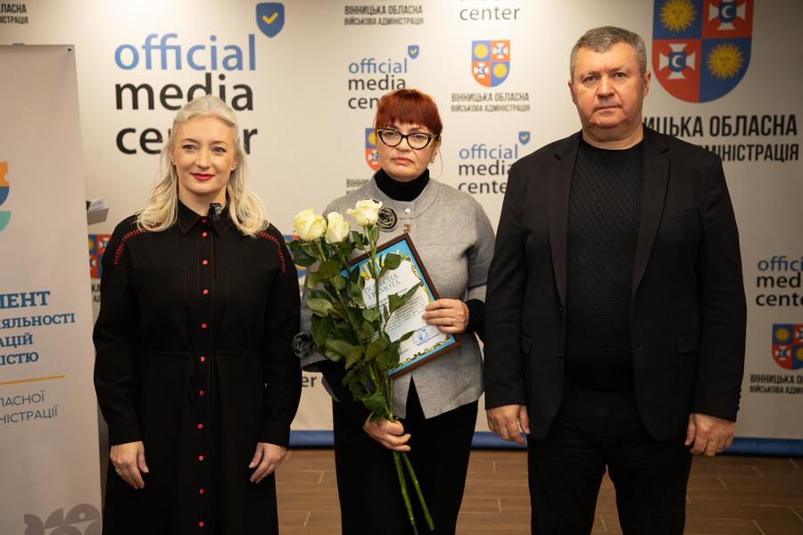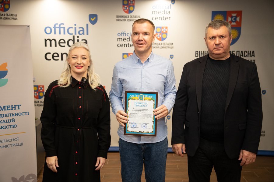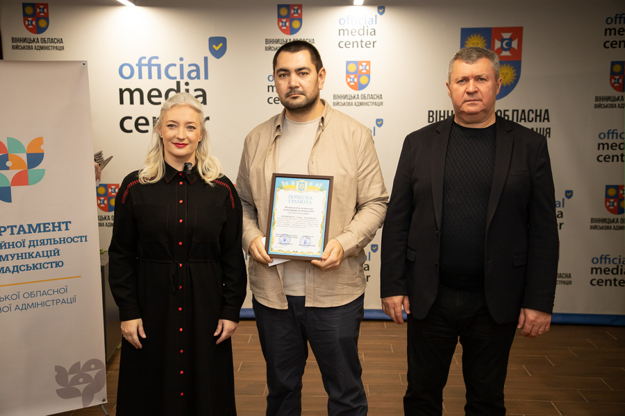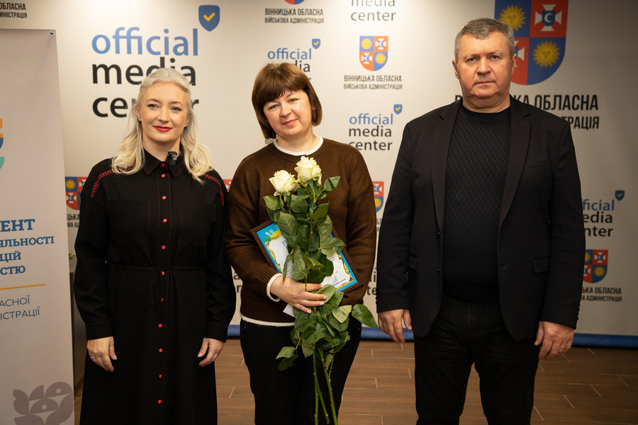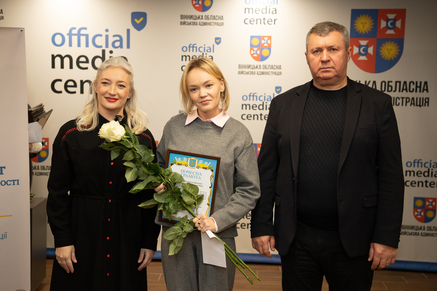 Сьогодні, 13 листопада, у Вінниці відзначили працівників радіо, телебачення та зв’язку напередодні їхнього професійного свята. Голова Вінницької обласної Ради Вячеслав Соколовий та перша заступниця начальника обласної військової адміністрації Наталя Заболотна привітали медійників та вручили їм Почесні грамоти обласної Ради та ОВА.