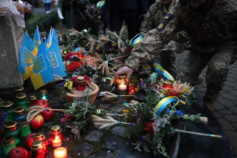 До пам’ятного знаку жертвам Голодомору поклали символічні колоски та запалили свічки пам’яті.