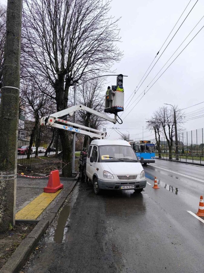 У Вінниці на перехресті Київської та Індустріального оновлюють світлофори та пішохідні переходи