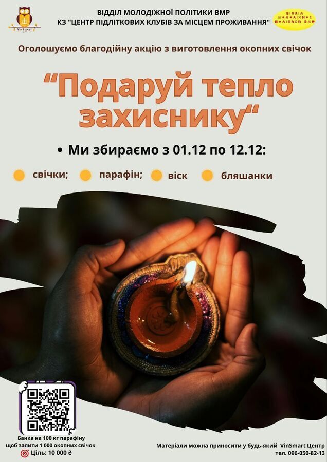 Акцію організовують Відділ молодіжної політики Вінницької міської ради та VinSmart Центр. Вони закликають мешканців громади долучитися, адже кожна принесена свічка або гривня — це частинка тепла і вдячності тим, хто щодня боронить країну.