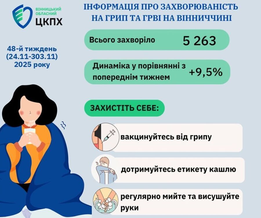 У Вінницькому ОЦКПХ підкреслюють, що епідемічний поріг наразі не перевищено. Водночас фахівці закликають жителів області не зволікати з вакцинацією проти грипу, адже щеплення є найдієвішим способом захиститися від тяжкого перебігу хвороби та ускладнень.