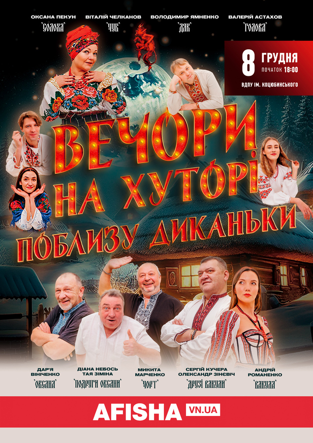 Приходьте поринути в атмосферу свята й отримати незабутні емоції 8 грудня о 18.00 у концертній залі Вінницького педагогічного університету на виставі «Вечори на хуторі поблизу Диканьки»!