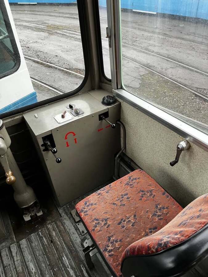 Ключовою особливістю спецтрамвая є гідравлічний відвал для розчищення колій. Ним можна керувати з кабіни: піднімати, опускати та повертати у потрібний бік, що дає змогу ефективно відкидати сніг убік від колії та підтримувати рух трамваїв навіть у складних погодних умовах.