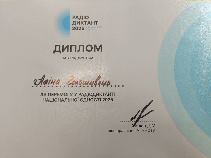 Безпомилкове виконання диктанту свідчить про глибокі знання мови, наполегливу працю та професійний підхід. Досягнення Аліни Голошивець стало прикладом для учнів та колег, підвищує престиж Люлинецької гімназії та всієї громади.