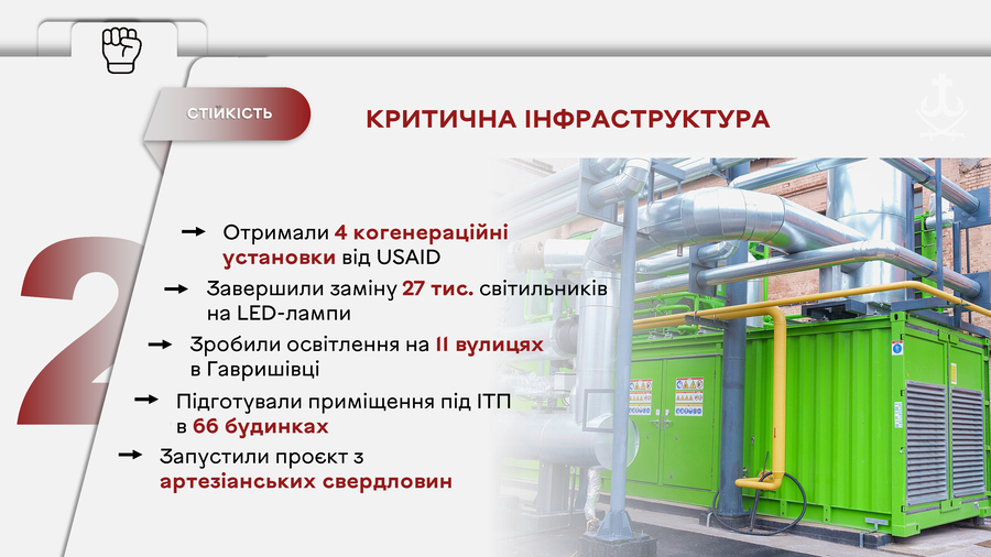 «В 2025 році ми отримали і встановили 4 когенераційні установки від USAID, потужністю по 2,5 МВт кожна, попри те, що агенція призупинила всі програми в Україні наприкінці січня 2025 року», – зазначив очільник міста.