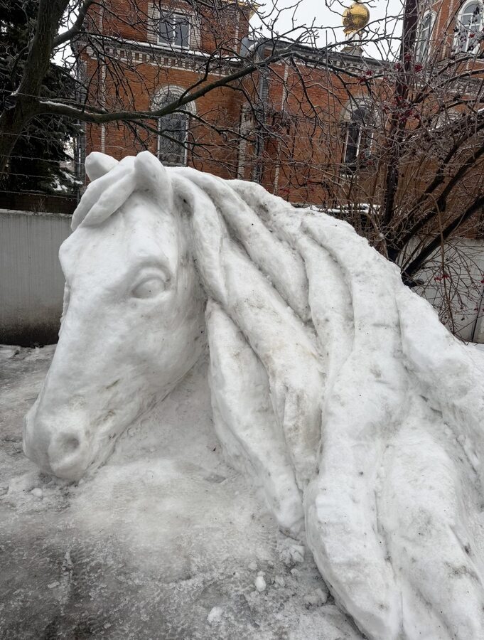 Під час роботи над конем не обійшлося без труднощів. Коли пішов дощ, скульптура зменшилася майже вдвічі, але колеги допомогли — досипали снігу. Інструментів під рукою не було, тож спочатку Олександр працював звичайною лопатою.