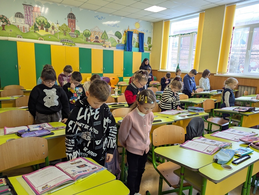 «Навіть коли діти навчалися дистанційно, хвилина мовчання в нас була. У школі тоді працювали вчителі, приходили батьки, разом плели маскувальні сітки – і ми теж зупинялися на цю хвилину. О 9:00 діти вже зазвичай на уроках в своїх класах. Ми свідомо зробили один спільний формат для всього закладу, щоб хвилина пам’яті була одна для всіх. У цей момент у школі стає дуже тихо. І цю тишу проживають разом і діти, і вчителі», – розповідає заступниця директора ліцею №3 Леся Шаповалюк.