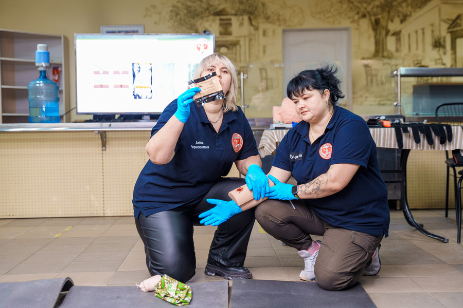 "При роботі з рідинами, зокрема з крововтратою, потрібно надягати додаткову пару рукавичок, а також захистити слизові, зокрема очі. Також, важливо, правильно оцінити стан потерпілих. Передусім допомога надається людям з критичними кровотечами та проблемами з прохідністю дихальних шляхів”, – зазначає тренерка.