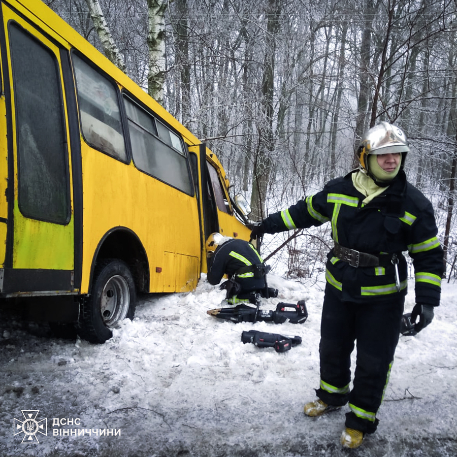 Як з’ясувалося, через ожеледицю автобус з’їхав із проїжджої частини в кювет та зіткнувся з деревом. Унаслідок удару водій опинився заблокованим у салоні транспортного засобу.