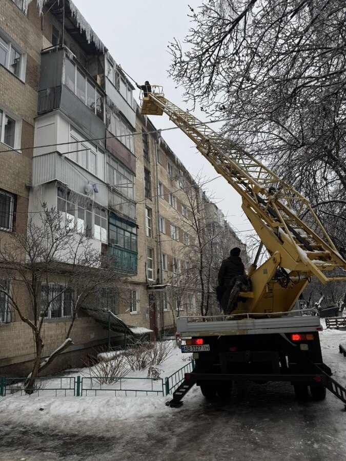 У Вінниці працівники управляючих компаній посилили роботи з очищення покрівель житлових будинків від бурульок та снігових нависань. Лише за останні кілька днів комунальники здійснили понад 30 виїздів, аби усунути потенційно небезпечні льодові утворення.