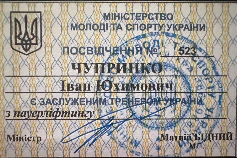 Вінницькому пауерліфтеру Івану Чупринку присвоїли почесне спортивне звання «Заслужений тренер України». Відповідне рішення стало визнанням його багаторічної роботи, високих особистих досягнень і вагомого внеску у підготовку спортсменів міжнародного рівня.