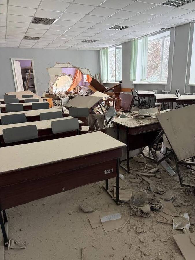 “Зруйнована стіна одного з навчальних корпусів. Навколо пошкоджено ще 5 будівель, серед яких є гуртожитки. Вибиті двері та понад 150 вибитих вікон. Пошкоджена система теплопостачання. На щастя, поранених немає,” – йдеться у повідомленні.