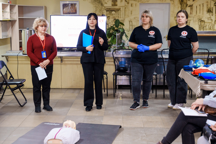 «В межах першого дня навчання, друга група голів правлінь ОСББ зосередила увагу на серцево-легеневій реанімації — тобто на тих випадках, коли людина втрачає свідомість і не дихає або ж має проблеми з диханням», — зазначає Мирослава Жиліна.