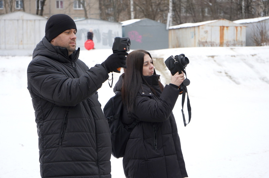 Дослідження проводили за допомогою тепловізора – спеціального приладу, який дозволяє побачити температурні відмінності на поверхні будівлі. Під час огляду перевірили фасад, покрівлю, цокольні приміщення, а також зони вікон і конструктивних стиків – ділянки, що потребують особливої уваги після утеплення.