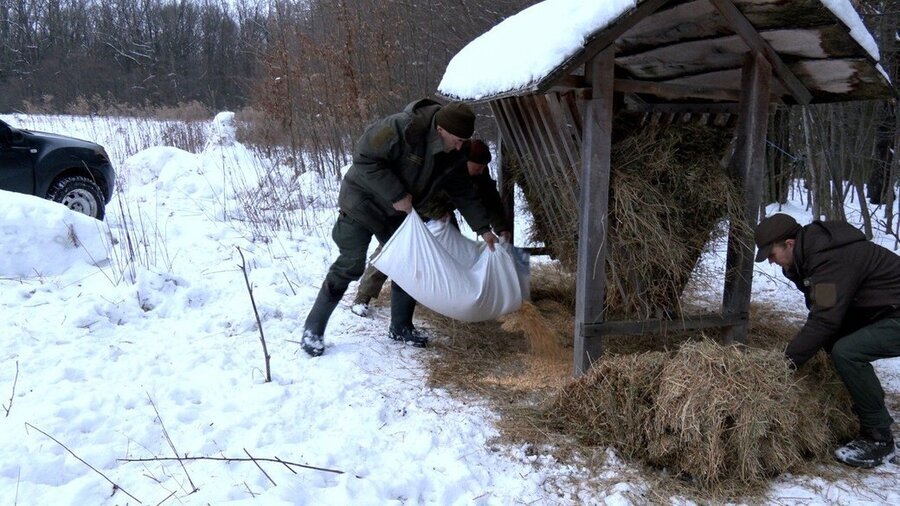 До підгодівельних майданчиків приходять і інші мешканці лісу — зайці та козулі.