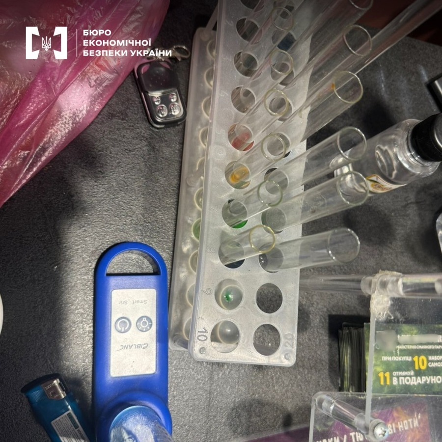 Під час проведення слідчих дій детективи вилучили з незаконного обігу значну кількість продукції. Зокрема, йдеться про близько 10 000 ємностей із ароматизаторами, нікотином та гліцерином.
