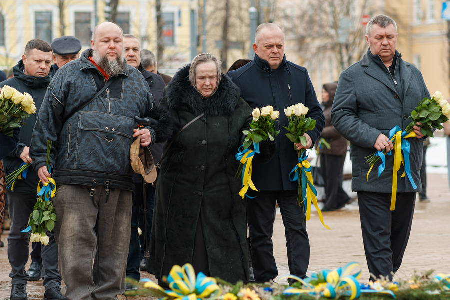До покладання квітів долучилися представники влади міста та області, військові, правоохоронці, рідні загиблих героїв, небайдужі громадяни. Делеговане покладання відбулося й до пам’ятного знака Небесній Сотні і загиблим героям російсько-української війни.