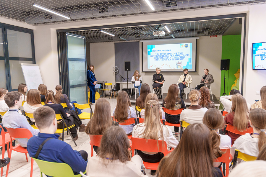 Щоб навчити школярів і студентів краще орієнтуватися в інформаційному просторі, у вінницькому молодіжному хабі організували форум «Європа без фейків». До заходу долучилися старшокласники ліцеїв громади та студенти закладів вищої освіти, зокрема Донецького національного університету імені Василя Стуса та Барського гуманітарно-педагогічного коледжу.