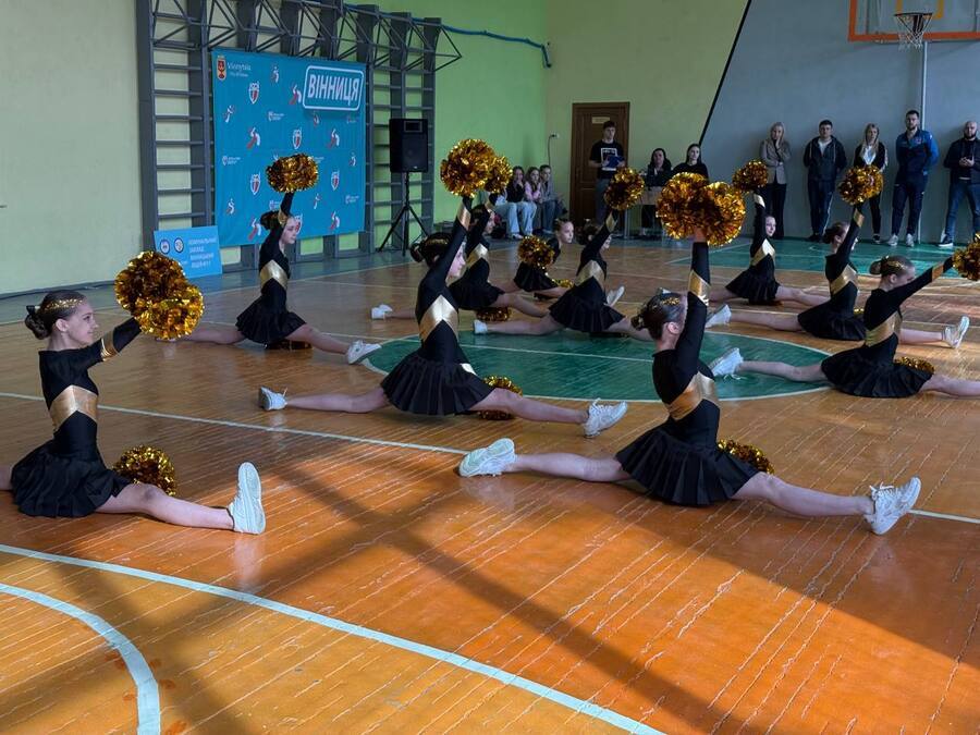 Година на зачіску з камінцями, яскравий макіяж, роки занять з акробатики, розтяжки й танців – у Вінниці провели фінал міського етапу «Пліч-о-пліч. Всеукраїнські шкільні ліги» з черліденгу.