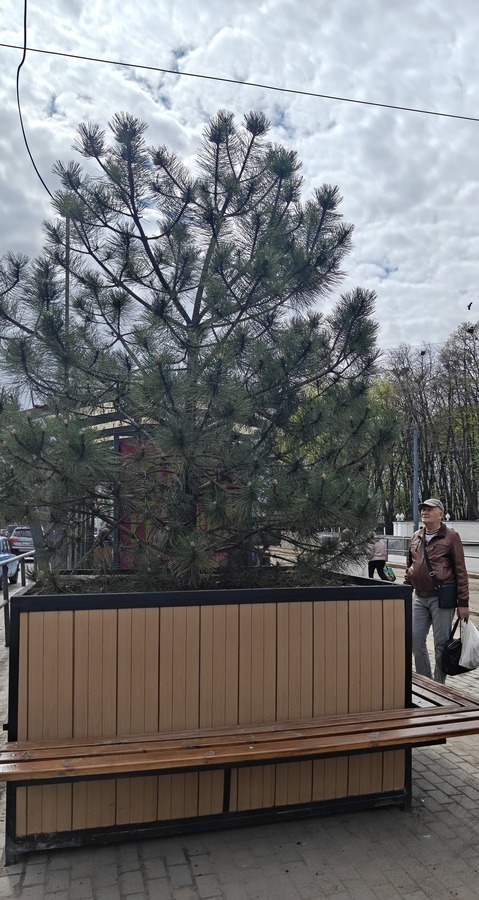 У кашпо висаджені дерева, які вже встигли адаптуватися до міських умов. В одному з них росте сосна, а інше працівники підприємства «Зеленбуд Вінниця» доповнили сакурою. Окрім естетичної функції, такі елементи благоустрою забезпечують додаткові місця для відпочинку пасажирів, роблячи очікування транспорту комфортнішим.