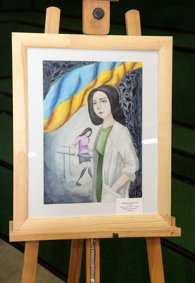 Одне з перших місць конкурсу здобула учениця Вінницької дитячої школи мистецтв «Вишенька» Ангеліна Устінова. Її робота «Обійми, що повертають до життя» розповідає про любов і зв’язок між військовим батьком і сином, де тато постає не лише героєм, а й ангелом-охоронцем.