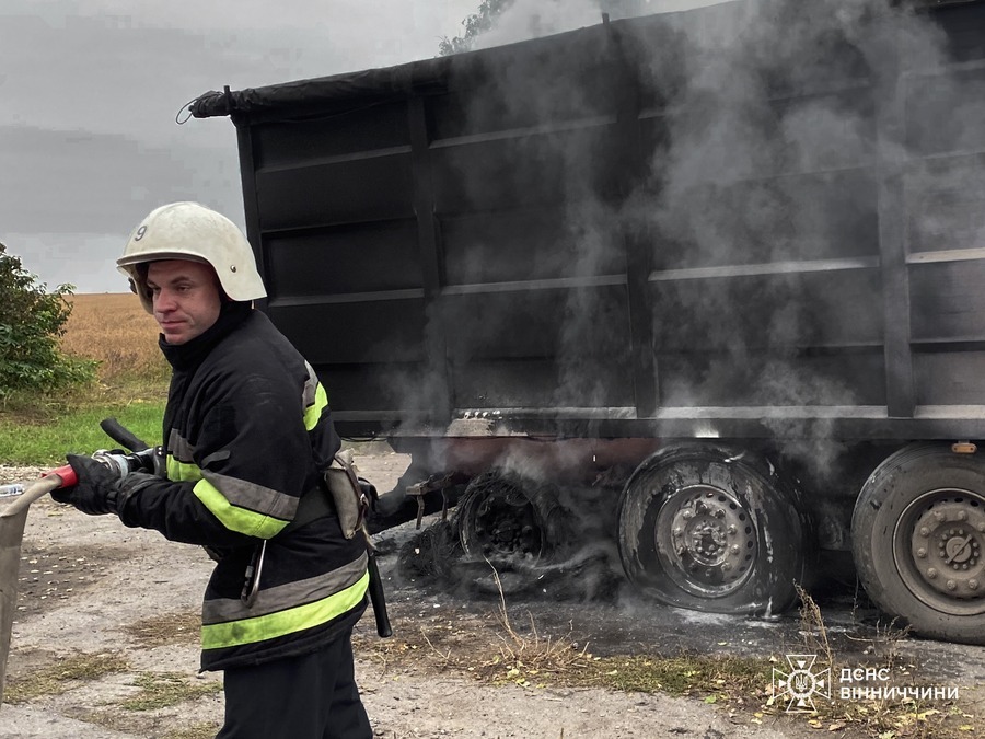 Третя пожежа виникла у селі Кушелівка Хмільницького району. Там унаслідок несправності гальмівної системи загорівся напівпричіп вантажівки.
