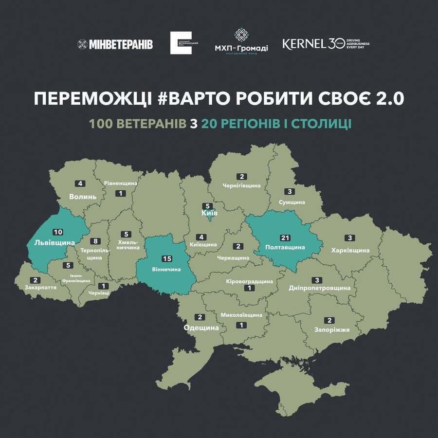 Вінниччина посіла друге місце серед усіх регіонів України за кількістю переможців. Загалом на конкурс було подано 259 заявок, а перемогу здобули 100 проєктів із 20 регіонів країни.