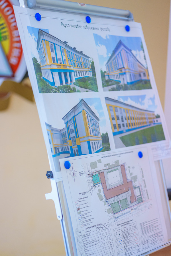 «У межах заходів з енергозбереження ми замінимо на металочерепицю та утеплимо покрівлю як старого, так і нового корпусів. Також утеплюємо всі фасади, цоколі й фундамент, поміняємо вікна, зробимо гідроізоляцію, відновимо благоустрій. Зокрема, передбачаємо облаштування на території велопарковки, двох паркомісць для маломобільних груп населення та невеличкого майданчика для проведення різноманітних заходів та занять з волейболу. А по периметру закладу встановимо паркан, який, зокрема необхідний, щоб убезпечити учнів від проїжджої частини, – розповів директор департаменту капітального будівництва Вінницької міської ради. – Завдяки погодженню фасадних рішень рідними загиблих воїнів, ми можемо перейти до завершального етапу формування проєкту – його експертної технічної оцінки та складання ПКД, після чого фактично будемо готові до виконання будівельно-монтажних робіт, старт яких заплановано на початок наступного року».