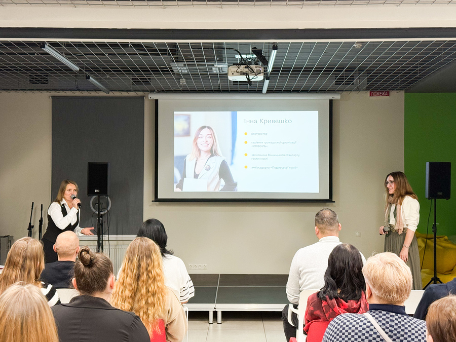 Голова ГО «Вінницька асоціація гостинності ХлібСіль» Інна Кривешко познайомила слухачів із проєктом «Вінницький стандарт гостинності», спрямованим на посилення конкурентоспроможності туристичної індустрії в місті та виведення на новий рівень якості надання послуг у сфері гостинності. Та розповіла про свої очікування від “Майстерні смаку та гостинності”: