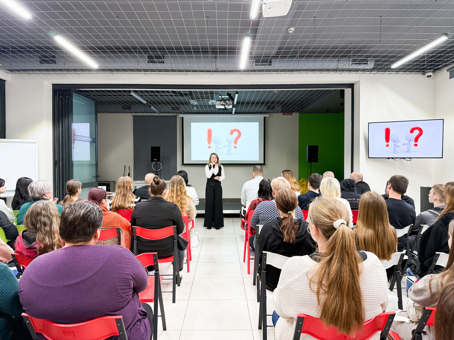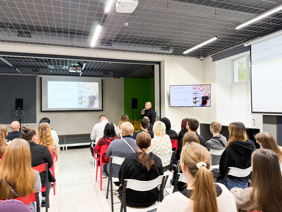 Стартова зустріч відбулась у хабі «Місто змістів», куди організатори запросили самих слухачів курсу (учнів 5 закладів профтехосвіти, де готують кадри для HoReCa) із педагогами та майбутніх спікерів навчальної програми (відомих у Вінниці експертів у цій галузі). Про суть проєкту та процес організації навчання розповіла авторка концепту і координаторка проєкту, менеджерка з комунікацій із сферою гостинності департаменту маркетингу міста та туризму Наталя Рибак.