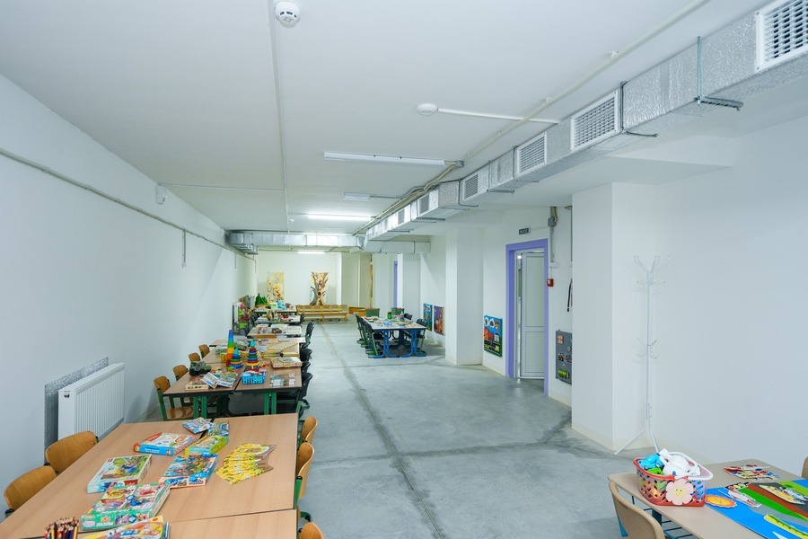 Приміщення має кілька виходів, сучасну вентиляційну систему, освітлення, санвузли, санітарний пост і фудзону. Тут є інтернет, меблі, іграшки та все необхідне для комфортного перебування.