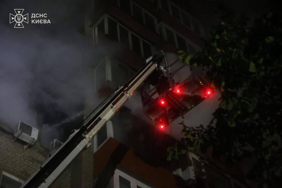 У Дніпровському районі зафіксовано влучання у 16-поверховий житловий будинок — на шостому поверсі спалахнула пожежа. Рятувальникам вдалося врятувати 10 осіб, серед них — діти. На жаль, виявлено тіла двох загиблих.