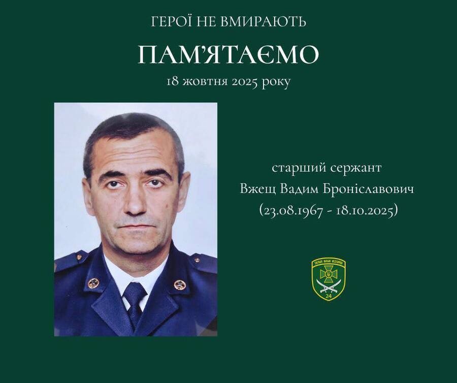 Світла пам’ять про Вадима Вжеща назавжди залишиться у серцях рідних, побратимів і всіх, хто його знав.