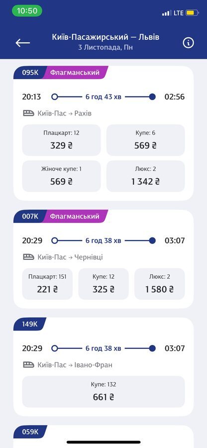 За його словами, листопад є "низьким сезоном мобільності українців", і саме зараз у потягах до Львова, Ужгорода та Одеси залишаються сотні вільних місць. На підтвердження своїх слів Лещенко прикріпив скриншоти із наявністю вільних місць на 3 листопада за популярними напрямками.