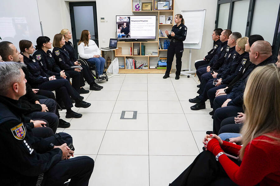 На запит поліції амбасадорка безбар’єрності Вінницької міської ради та проєкту «Рух без барʼєрів», голова правління ГО «Гармонія» Людмила Нецкіна провела комунікаційний тренінг по Довіднику безбар'єрності для правоохоронців Вінницької області.