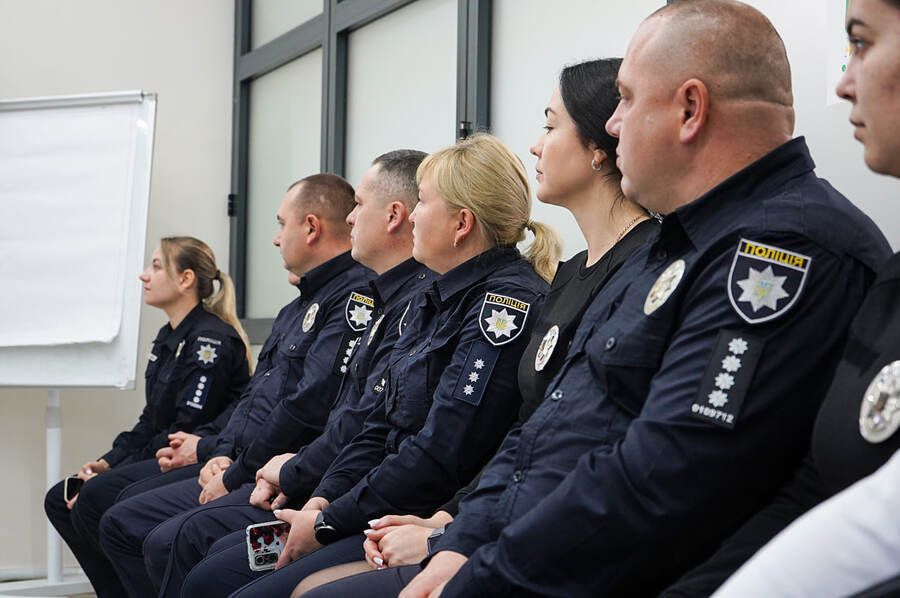 До заходу долучились близько 20 учасників, головним чином інспекторів, з дотримання прав людини територіальних підрозділів поліції Вінниччини. В процесі навчання вони ознайомились з основними поняттями безбар’єрності, дізнались більше про види бар’єрів, а також коректні звертання, які варто використовувати в своїй роботі.