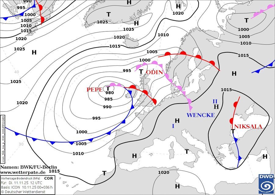 Завтра, 11 листопада, в Україну прийде циклон із південного заходу Європи на ім’я Niksala. Як зазначають синоптики, він активний і «молодий», тому принесе значну дощову погоду.