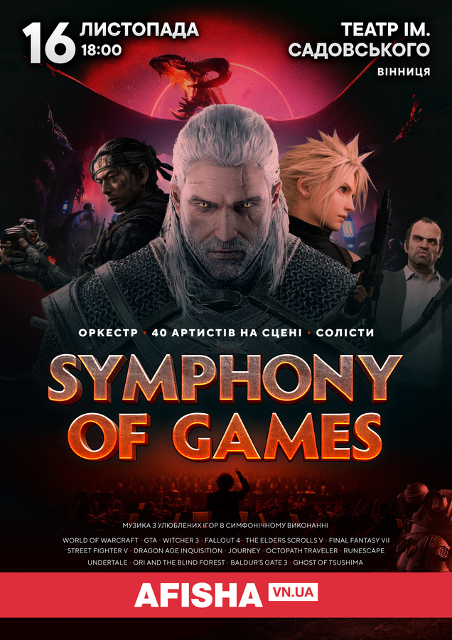 Квитки (від 350 грн) встигніть придбати на сайті https://afisha.vn.ua/events/symphony-games