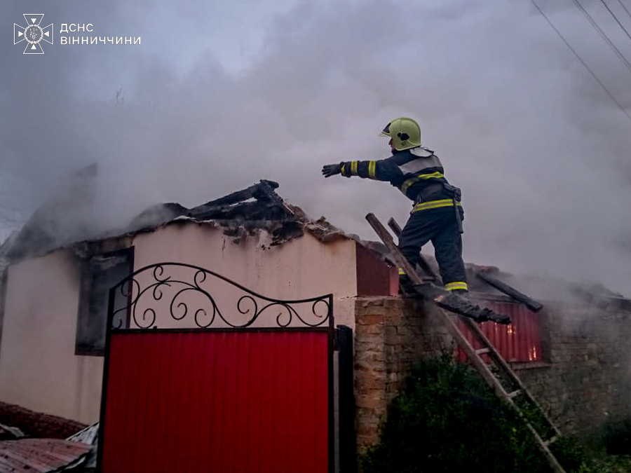 Уже на ранок, за аналогічною причиною, виникла пожежа у помешканні села Кузьминці Гайсинського району. Вогонь охопив дах житлового будинку площею 100 кв. м. Для ліквідації надзвичайникам довелося залучити два підрозділи ДСНС.