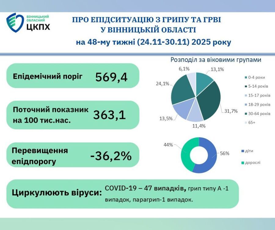 У Вінницькому ОЦКПХ підкреслюють, що епідемічний поріг наразі не перевищено. Водночас фахівці закликають жителів області не зволікати з вакцинацією проти грипу, адже щеплення є найдієвішим способом захиститися від тяжкого перебігу хвороби та ускладнень.