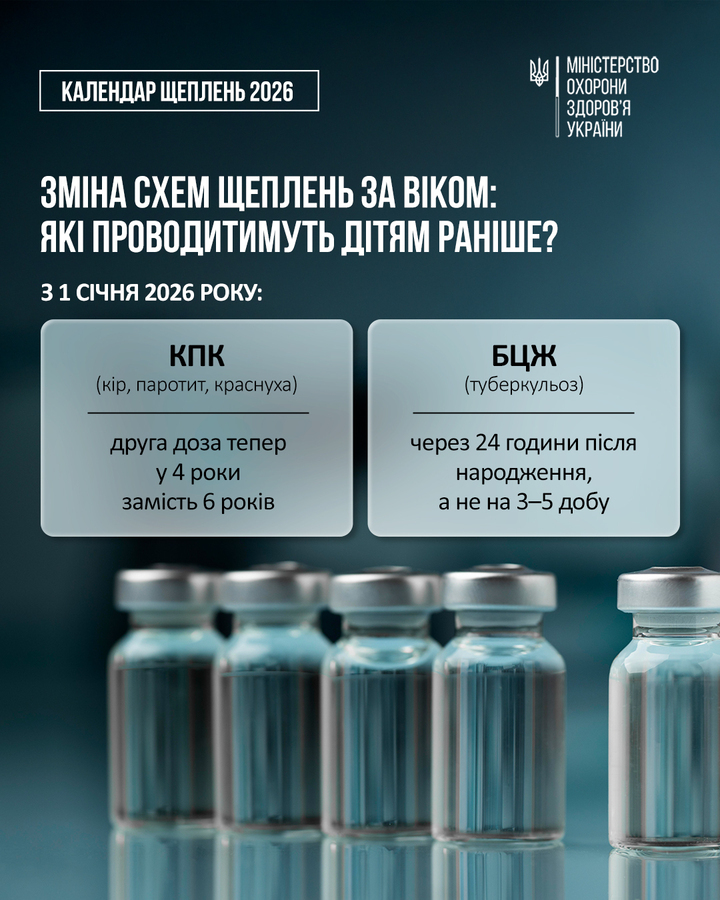 Також змінено та уточнено схеми щеплень проти гепатиту В, Hib-інфекції та інших захворювань. Детальна інформація доступна у спеціальному розділі Календаря профілактичних щеплень 2026 на офіційному сайті Міністерства охорони здоров’я.