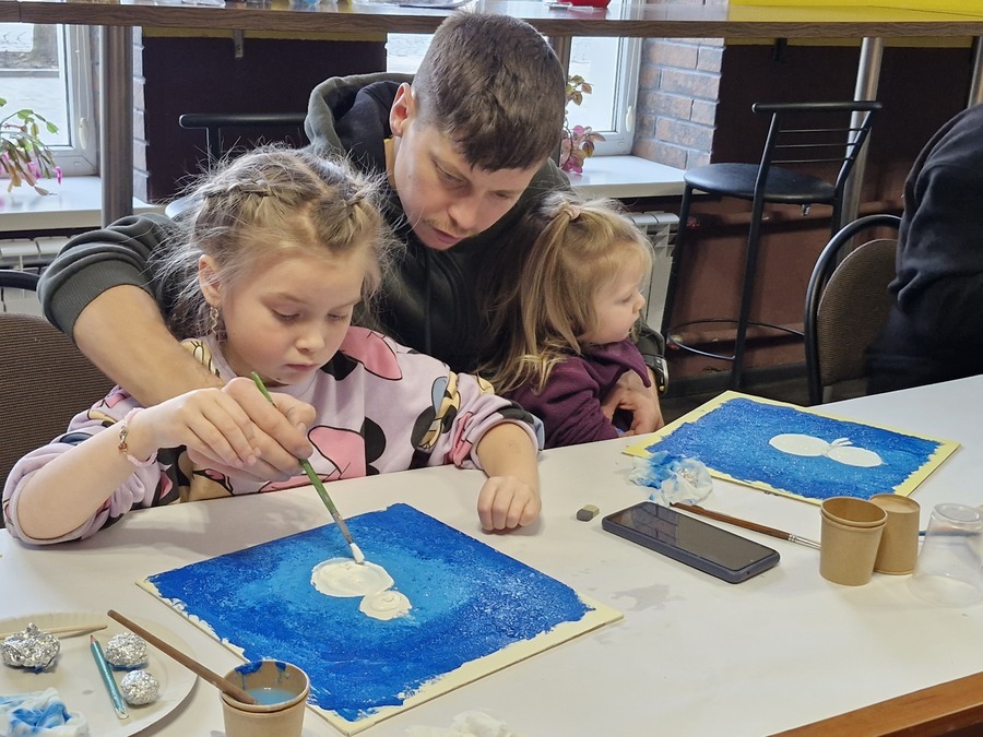 У передноворічній атмосфері батьки разом із дітьми долучилися до творчої активності та створили власного сніговика – доброзичливого, усміхненого й сповненого зимового настрою. Під час спільного малювання кожна дитина змогла проявити свою фантазію, а дорослі – підтримати й підказати, перетворюючи процес на теплу сімейну взаємодію.