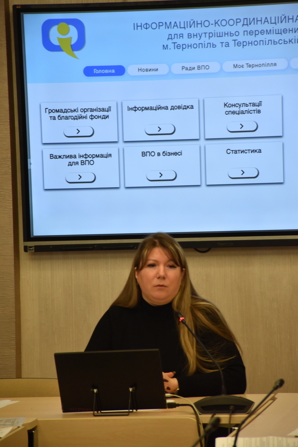 Директорка департаменту соціальної політики Вінницької міської ради Валентина Войткова поінформувала про заходи соціальної підтримки внутрішньо переміщених осіб, що фінансуються з бюджету Вінницької міської територіальної громади.