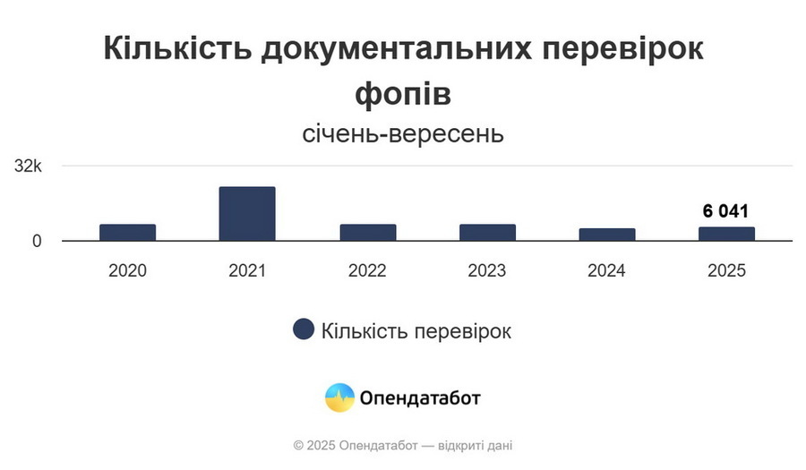 Цьогоріч Податкова провела в Україні 6 041 документальну перевірку фопів. Це на 12% більше, ніж за аналогічний період торік, однак у 3,8 рази менше, ніж у 2021 році. На Вінниччині провели 265 таких перевірок. Про це йдеться в аналітиці «Opendatabot».