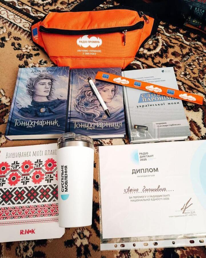 За високий результат педагогиня отримала подарунки від організаторів та спонсорів акції на знак визнання її старань і внеску в популяризацію української мови.