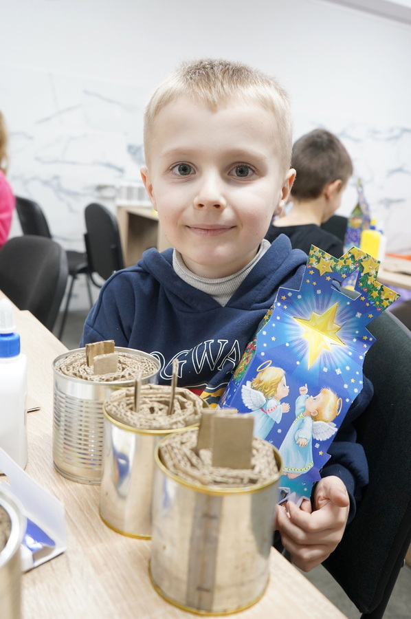 «Це неважко і багато сили не треба. Такі свічки важливі, щоб військові могли зігрітися в окопах або підігріти їжу чи воду. Сьогодні я зробив дві свічки, а бляшанки мені дали тут, у Центрі. Я вважаю, що навіть маленькі дітки можуть робити важливі справи, бо немає ні замалого, ні завеликого героя», – ділиться семирічний учасник акції Арсен.