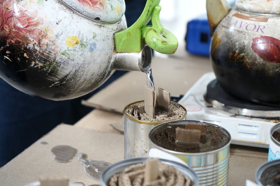 «Я раніше не робила такі вироби. Зараз ми закручуємо картон, вставляємо у металеву бляшанку, а потім її заливають парафіном – так і створюється окопна свічка. Вони потрібні воїнам, щоб не було холоду. Я передам цю татові, бо він зараз на фронті. Вона йому потрібна для того, щоб йому було тепло», – ділиться дівчинка.