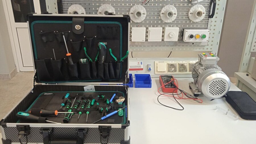 – Це різноманітні схеми монтажу, ручний інструмент, стенди для монтажу промислових систем підключення, сонячні панелі, п’ятикіловатна сонячна електростанція. Це датчики, контролери, вимикачі, асинхронні двигуни, всі необхідні пускові установки для підключення. Там є все діагностичне обладнання, щоб навчитися з’ясувати причини несправності. Також безпосередньо самі виробничі місця, на яких можна монтувати схеми різної складності, – зазначив очільник закладу.